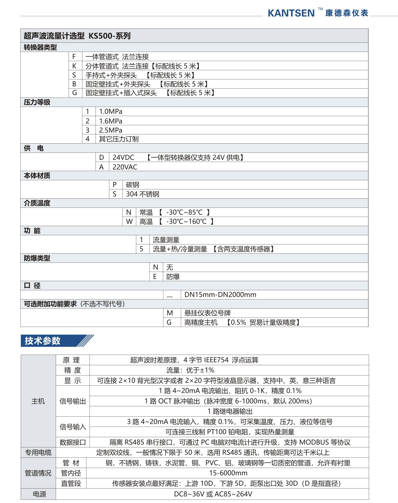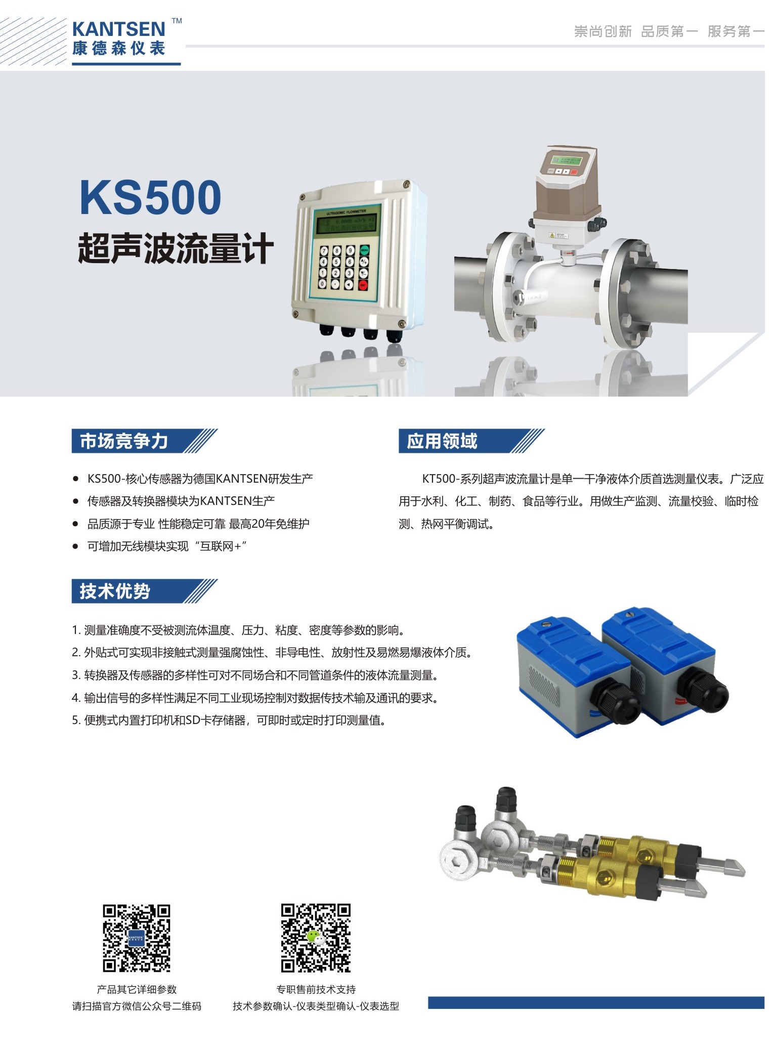 KS500-系列超声波流量计单一干净液体介质首选测量仪表。广泛应用于市政自来水厂、供暖、水利、化工、制药等行业。用做生产监测、流量校验、临时检测、热网平衡调试。
